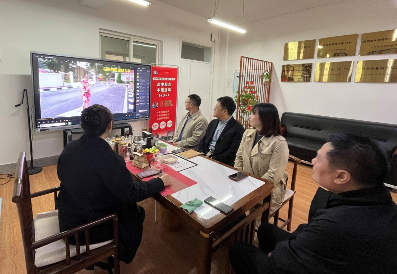 在趣优学教育公司,董事长赵云接待了学院一行,双方围绕校企合作、人才培养等议题展开深入交流。王灏介绍了我院学科发展和毕业生就业等情况。赵云女士介绍了企业发展和人才需求的基本情况,对语言专业学生培养提出建议。同时她还期望与外院合作,通过海外实习或游学项目,提高学生综合素质和求职竞争力,助力外院学生高质量就业。