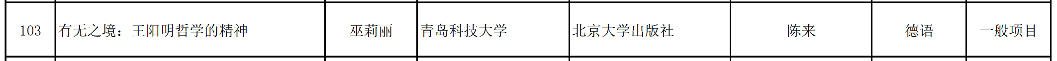 巫莉丽副教授作为项目负责人申报的《有无之境:王阳明哲学的精神》(德文版)成功获批立项。该项目的获批,是我校在国家级高水平哲学社会科学项目建设方面取得的又一重要成果。据悉,我校是驻青省属高校中本年度唯一获批该项目的单位,标志着学校在服务国家文化战略、推动中华学术精品“走出去”方面取得新的突破。