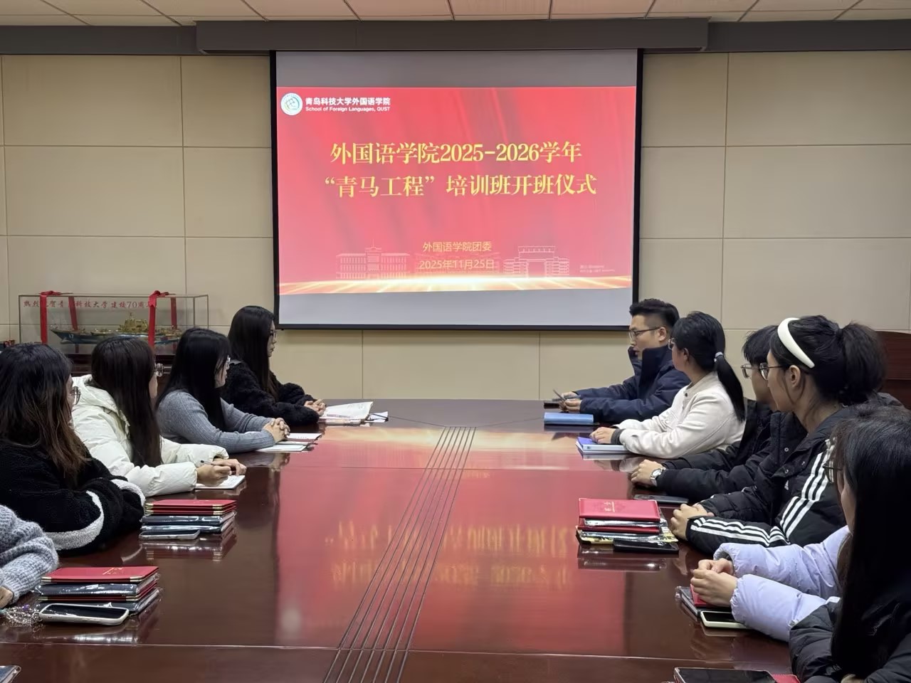 2025-2026学年“青马工程”培训班开班仪式在517会议室举行。学院团委副书记王玉凯主持仪式并讲话,往期青马优秀学员及本期青马学员共同参加仪式。