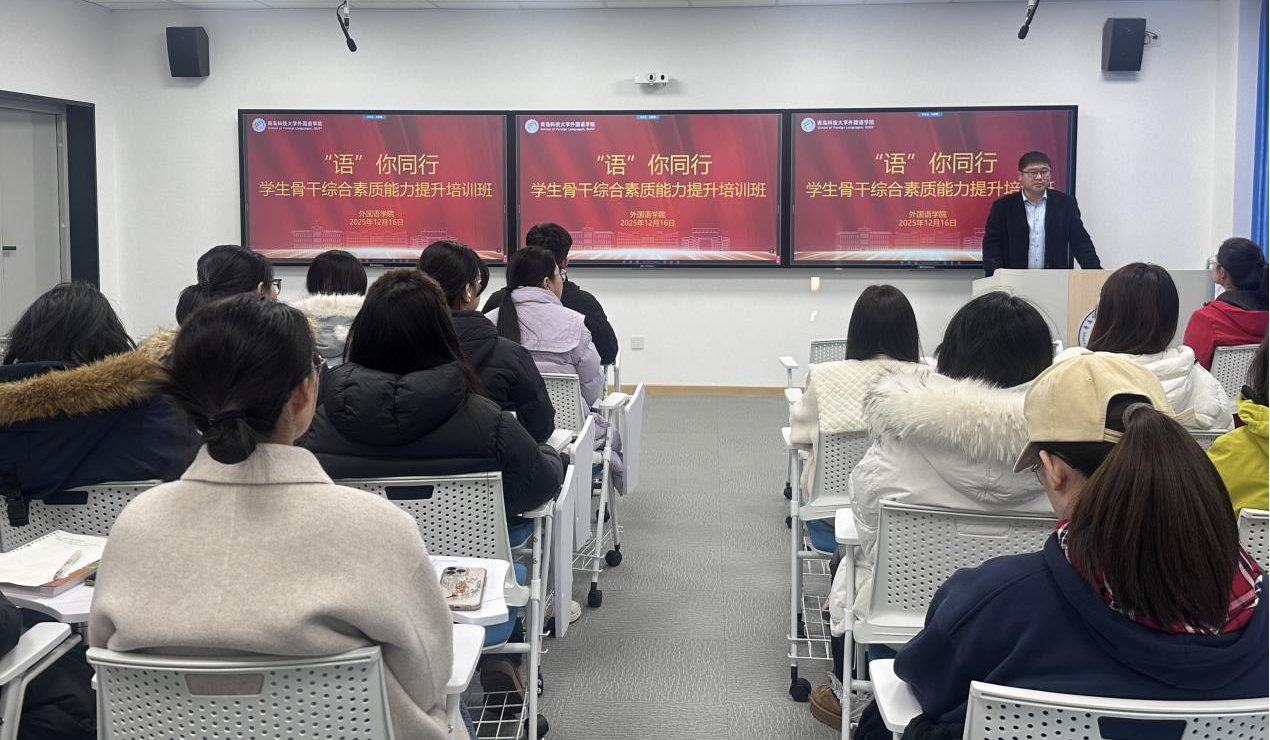 举办“语”你同行学生骨干综合素质能力培训会,学院党委副书记兼副院长马寒、全体辅导员及主要学生骨干参加本次活动。