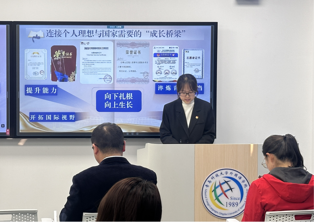 学科竞赛代表英语234班武采辰,在2025年“外研社·国才杯”“理解当代中国”全国大学生外语能力大赛及全国商务英语竞赛中荣获国家级奖项,她结合自身备赛、参赛经历,介绍了参加学科竞赛的竞赛备赛流程、团队协作技巧、资源整合方法等核心要点,鼓励同学们主动牵头组队,以赛促学、以赛促练,提升自身及身边同学的专业实践能力。